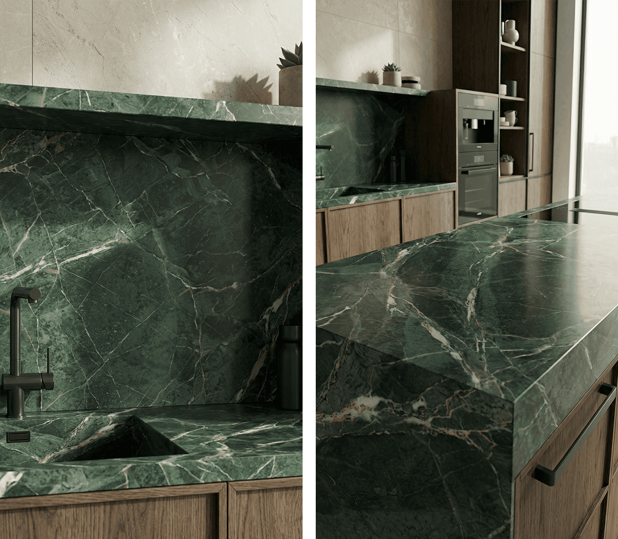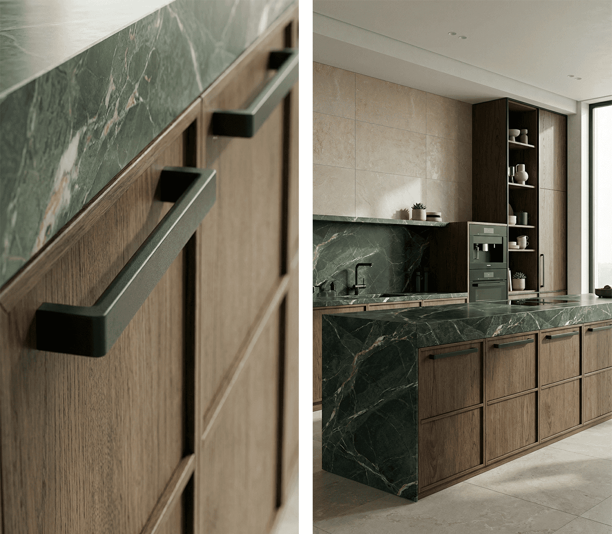 Close-up and wide views were combined to communicate material quality, finishes and overall spatial coherence.